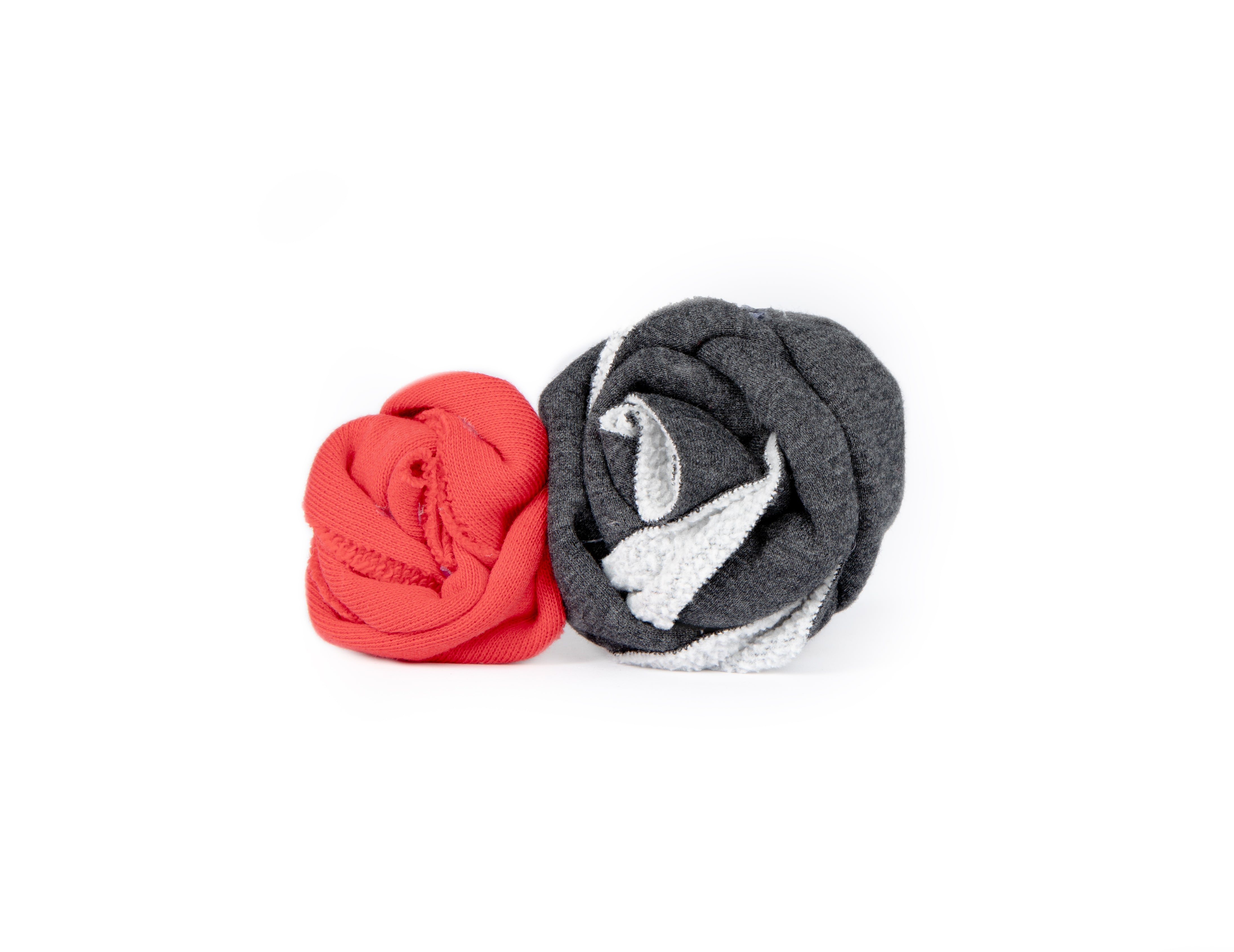 ROSES PIN, a rosette brooch made from the fabric of excess vintage sweaters. Made by hand, attached to a silver tone clasp pin.