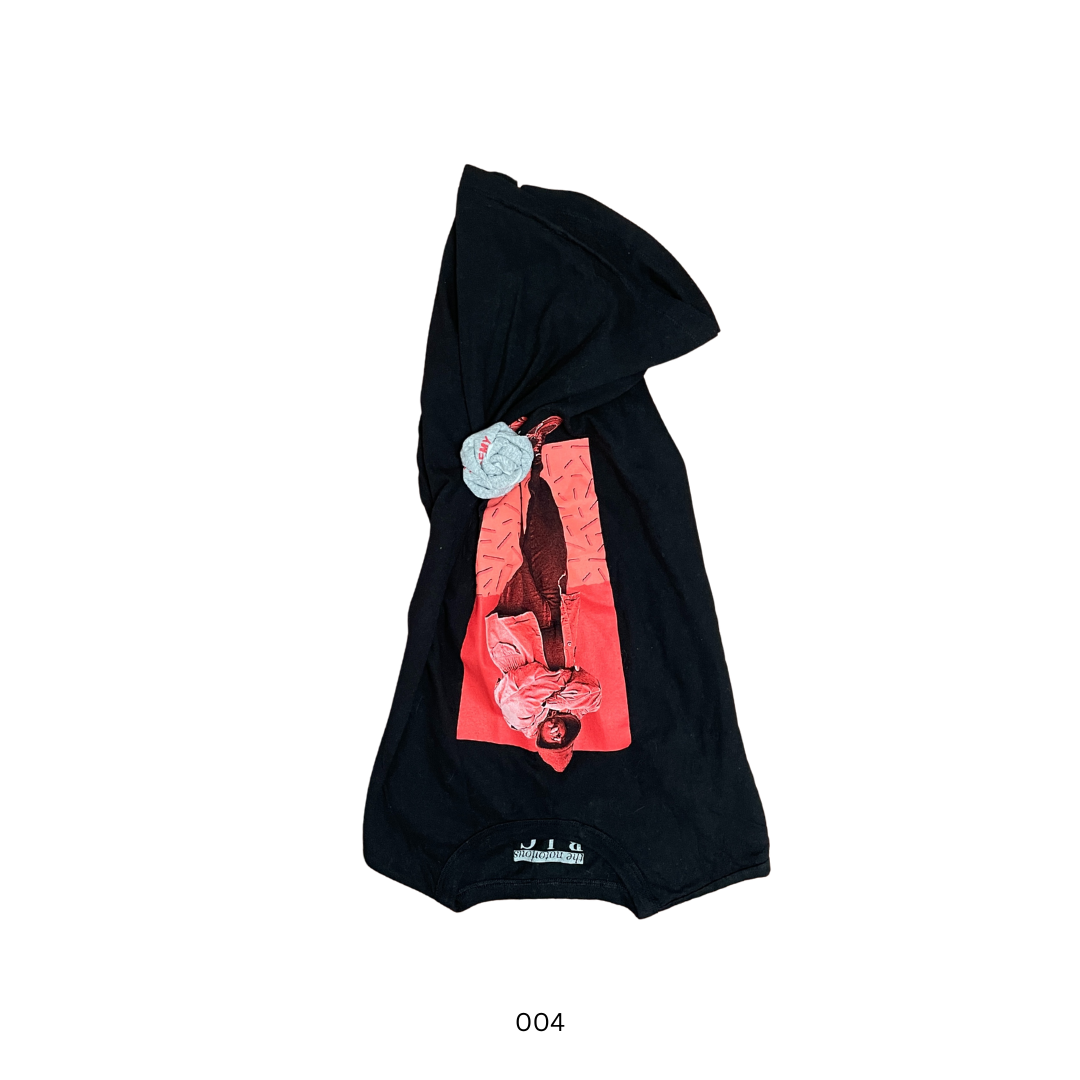 FLIPPED TSHIRT with handmade rose pin. Halter neck top with cowl neck, fixed at the back with shell buttons and dainty handmade button loops. Flip it back to wear as a standard tee. Each tee comes with a removable roses pin, made by hand from damaged tees. Use the pin to ruche fabric how you wish.
